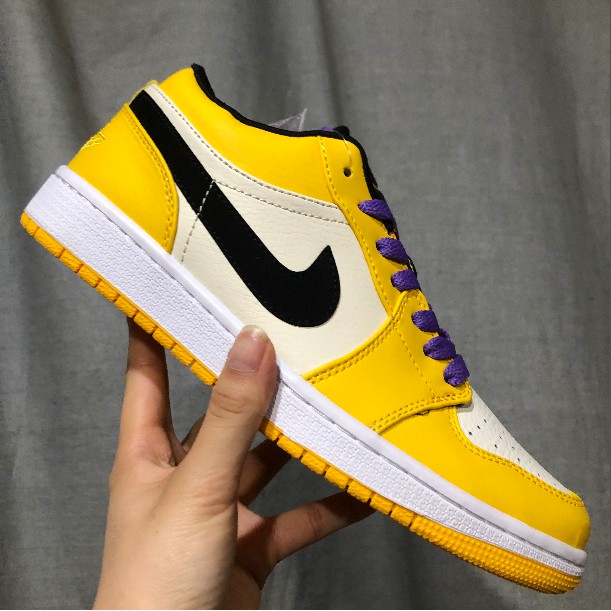 Air jordan 1 low lakers yellow. Royal purple makes its way onto the insoles shoelaces and on the small jumpman logo. Perfect for those still dreaming about the 2002 era three peat days the aj1 low features the teams signature yellow color across the upper panels of the shoe outsole bottom and on the jordan tongue label. Stay dripping in legendary purple and gold after copping the jordan 1 mid se lakers. Inherit the lakers championship dna after buying these on stockx today.