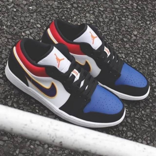 Air jordan 1 low lakers. Constructed out of leather and nubuck the shoe starts off with white leather on the side panels game royal leather on the toe bright crimson leather on the collar black nubuck overlays and. Air jordan 1 air jordan. Part la lakers and part top 3 vibes land on this upcoming air jordan 1 low. Shipped with usps priority mail.