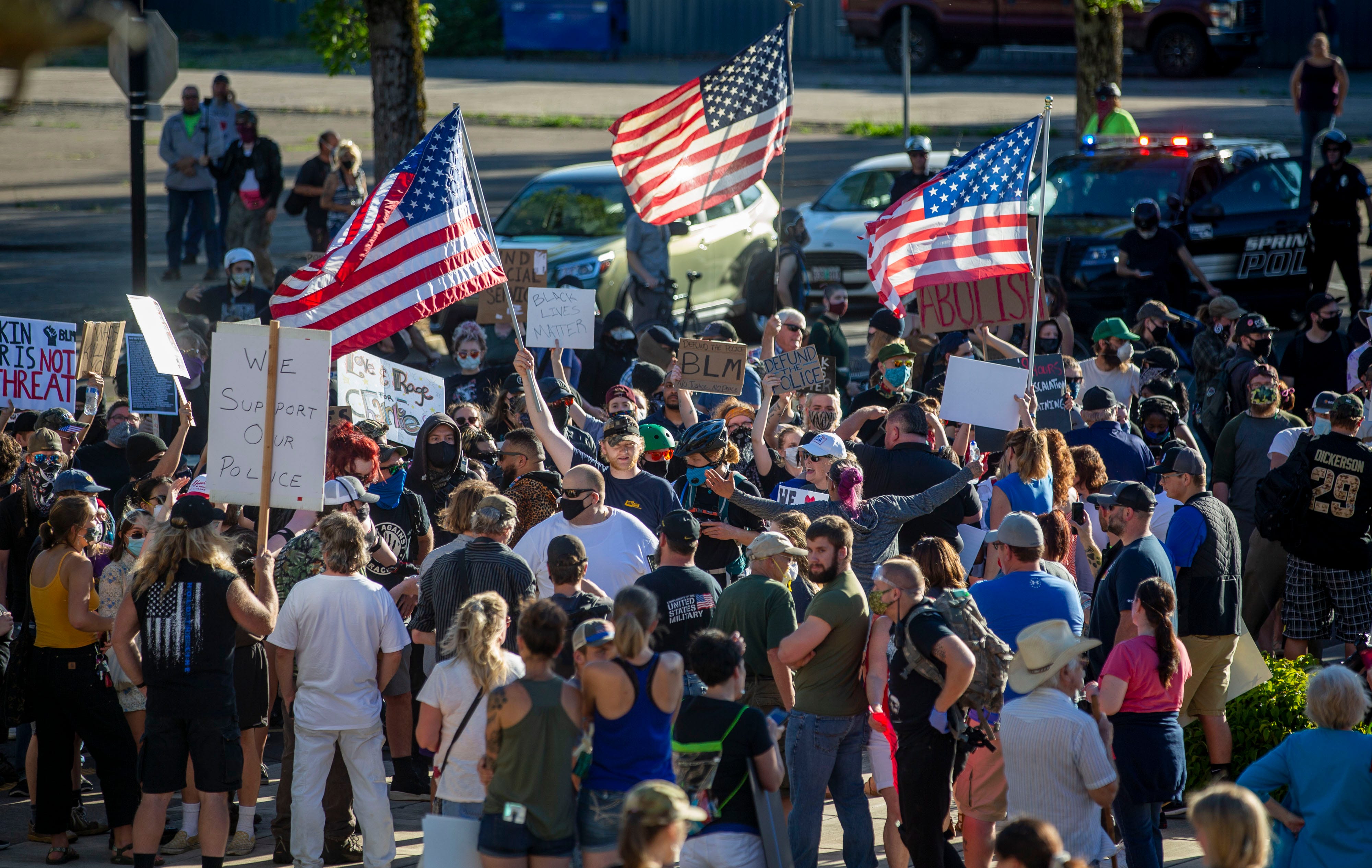 After stealing the flag blm antifa rioters broke it and sharpened the stick to make a spear.