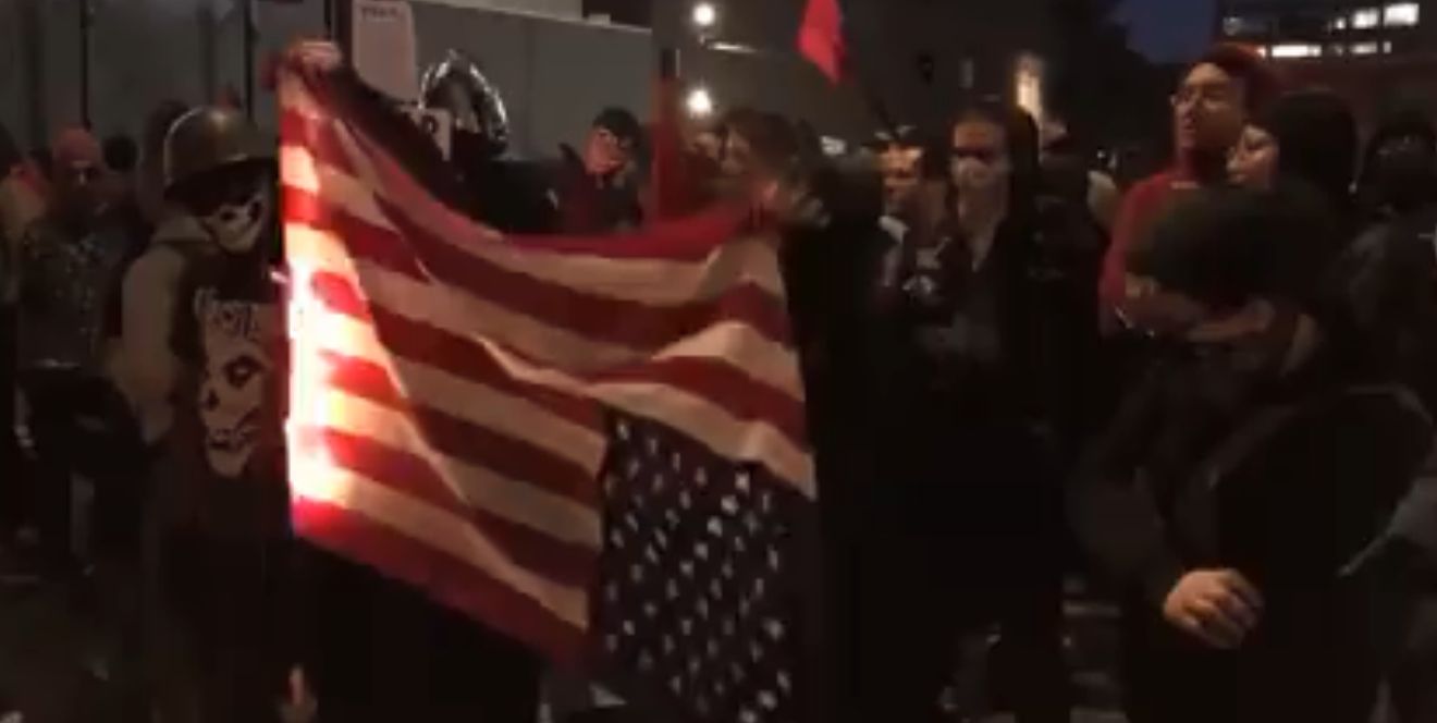 In a separate incident on friday antifa demonstrators stole an american flag from a pickup truck and set fire to the flag in the streets.