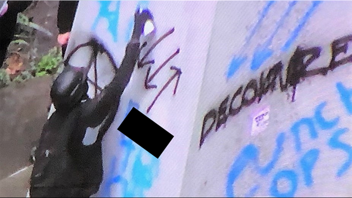 Denver school board member and community activist tay anderson stopped white teenagers from spraying graffiti on the side of a brick wall. In a relatively short period of time an unidentified white subject sprayed red graffiti on the outside walls of the governors mansion a parking area of the state capitol building several parts of smith park as well as a driveway wall on n.