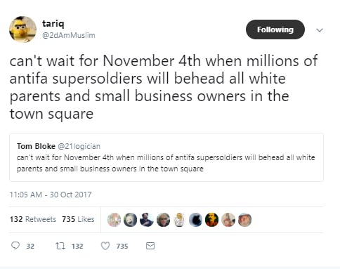 You think paying for supersoldiers is cheap. Antifa supersoldier hoax refers to a sarcastic tweet by twitter user atkrangtnelson that said on november 4th 2017 a group of antifa supersoldiers would behead all white parents and small business owners in the town square. Antifa ae n t i f e ae n t i f is an anti fascist political movement in the united states comprising a diverse array of autonomous groups that aim to achieve their objectives through the use of both non violent and violent direct action rather than through policy reform. Replyall did a great segmento their podcast about.