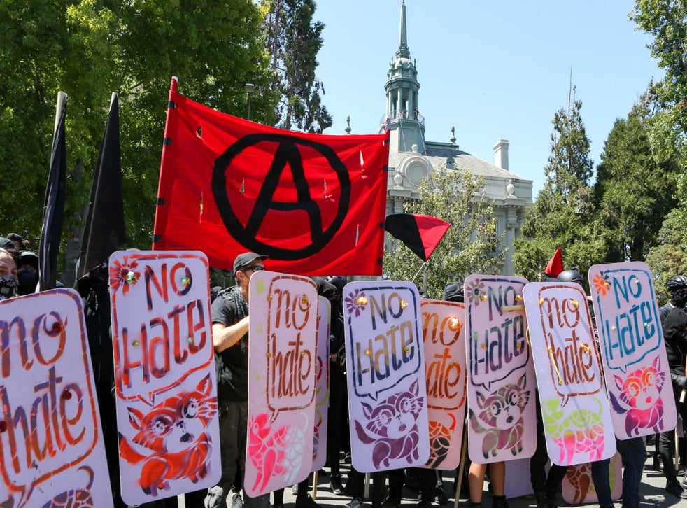 Most people who show up to counter or oppose white supremacist public events are peaceful demonstrators but when antifa show up as they frequently do they can increase the chances that an event may turn violent. Mn family home with trump flags in front yard is set on firebiden 2020 antifa anarchist symbol and blm spray painted on garage door. Kyle olson 8 oct 2020. Antifascist activists with a modified anarchist red and black flag and transgender pride flag in a 2017 protest according to beinart antifa activists try to publicly identify white supremacists and get them fired from their jobs and evicted from their apartments and also disrupt white supremacist rallies including by force.