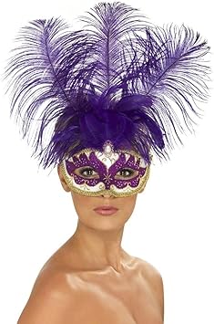 Fiesta de antifaz fiestas de carnaval mascaras de carnaval antifaz con plumas mascara antifaz carnaval veneciano carnaval de venecia baile de mascaras antifaz veneciano. Antifaz muy original con plumas en un lateral ideal para cualquier tipo de fiesta ya sea un cumpleanos nochevieja carnaval. Asi fue su historia del antifaz de carnaval con plumas hoy en dia aun siguen siendo tan usados extensivamente como accesorio para completar disfraces de adulto ninos hombres mujeres quinceaneras. Purple and gold mardi gras mask with gold chains and black ribbon ties.