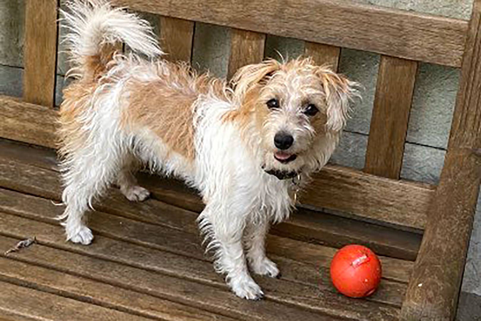 He is a white male jack russell cross and was born in 2018.
