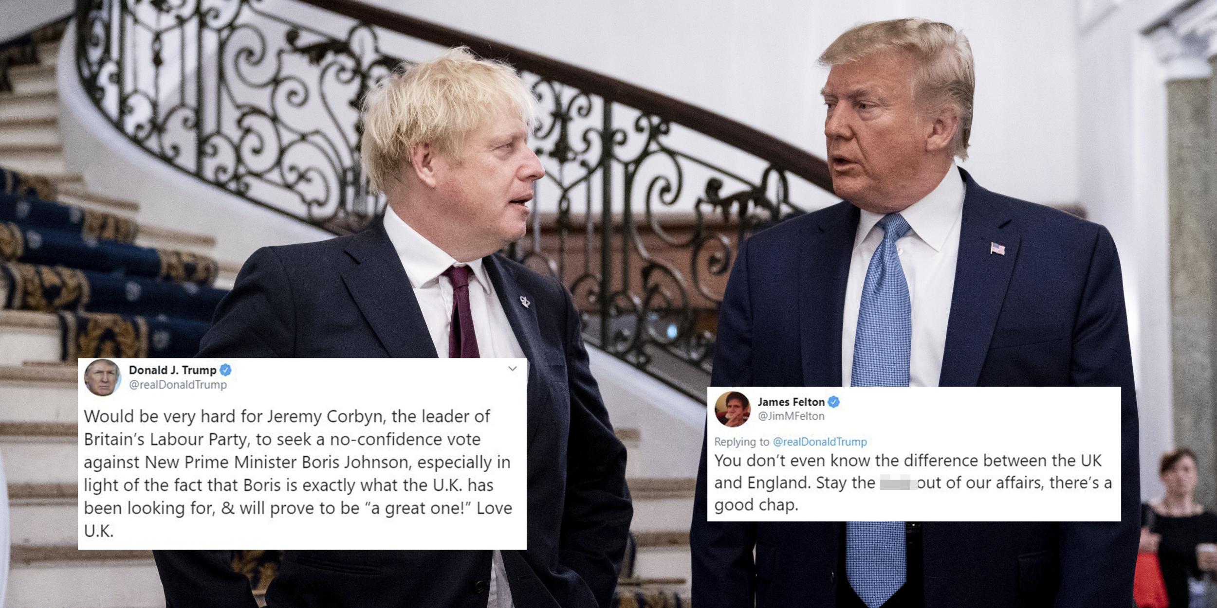 Boris johnsons tweet still had trumpc congratulations in the background 10 downing street.