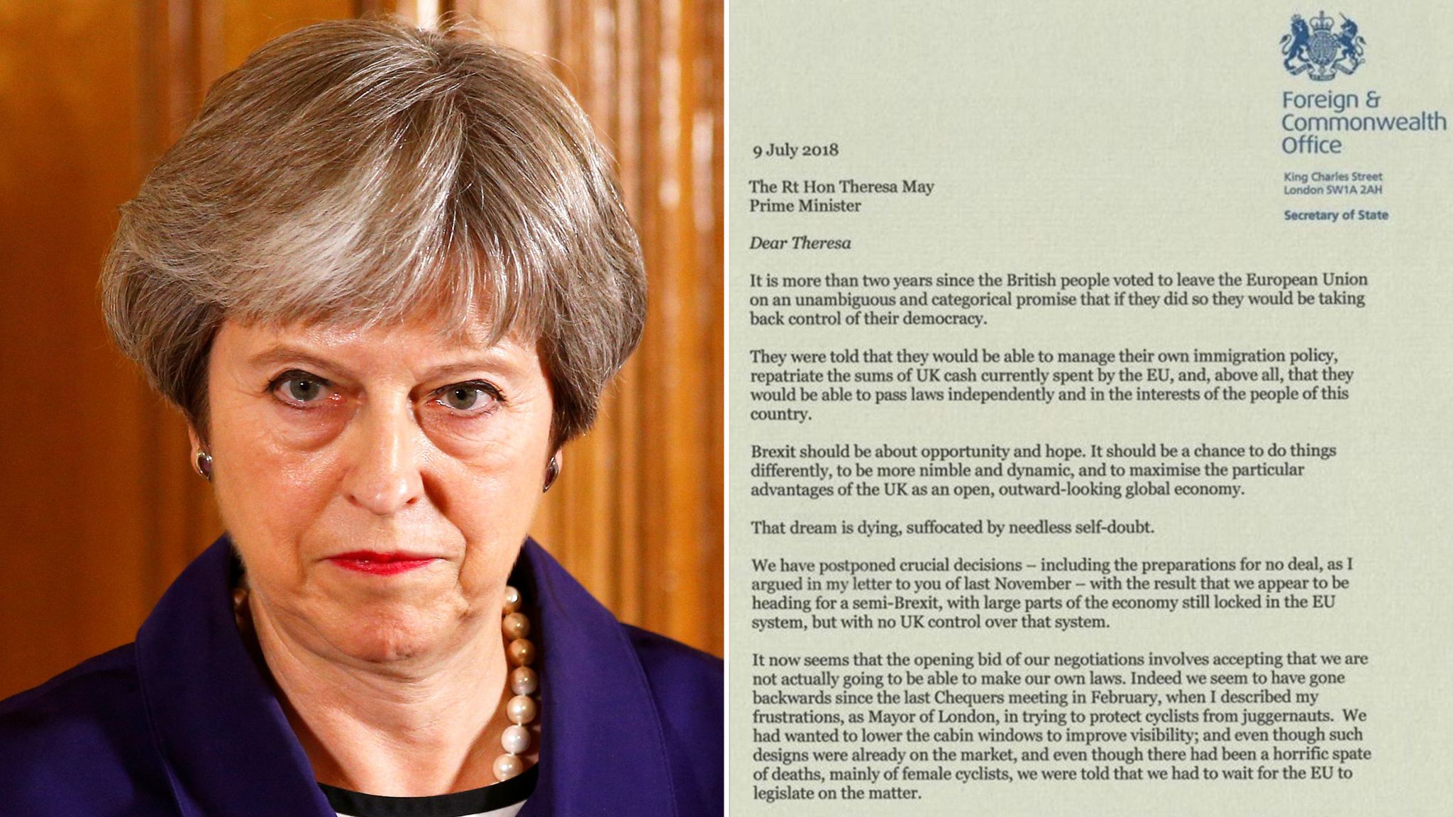 The bolton west mp described the new three tier measures as worse than the disease in his resignation letter to mr johnson. Boris johnsons resignation letter to british pm theresa may. Boris johnson could hold theresa mays fate in his hands today as he weighs up whether or not to launch a leadership challenge. Dear boris thank you for your letter relinquishing the office of secretary of state for foreign and commonwealth affairs.