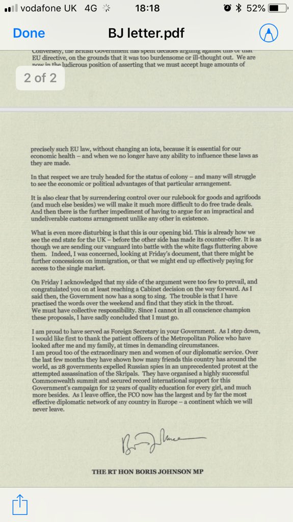 Boris johnson resignation letter. Boris johnson criticized for posing with resignation letter his opponents seized on the pictures as evidence of self interest during a deepening political crisis in britain. It included a plea for the treasury to retain its credibility and a warning that. He said the latest plan had failed and was doing damage to physical. The smirking ex foreign secretary posed for pictures as he signed.