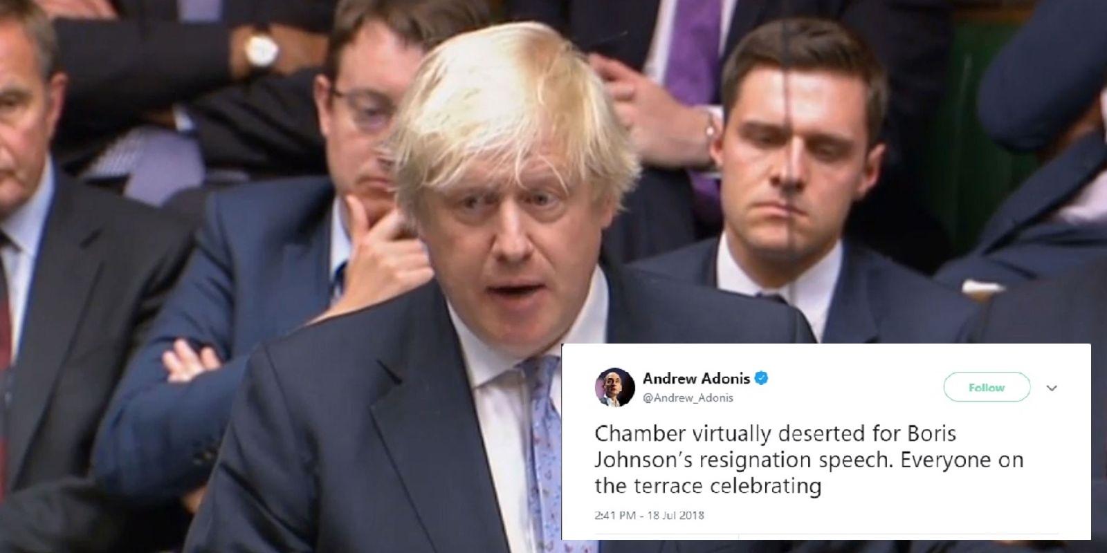 Boris johnsons resignation speech. Boris johnsons resignation speech full text. The former foreign secretary is poised to address the commons following his dramatic decision to quit over the pms brexit policy. Former foreign secretary boris johnson attacks the governments approach to brexit in his resignation speech in the house of commons.