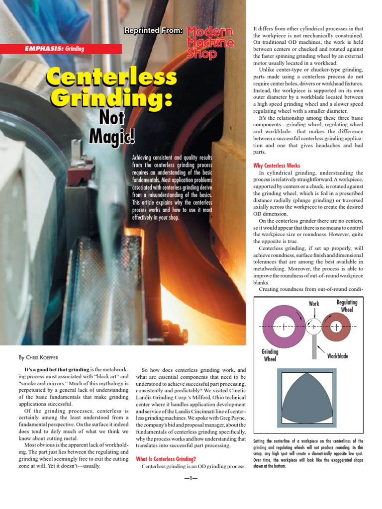 This centerless system is easy to use and requires only a fraction of the time usually needed to set up a conventional centerless grinder. Our centerless grinding department consists of a cincinnati no. In this setup high spots no longer create diametrically opposed low spots. To enable the centerless grinding process to create rounding action on the workpiece it must be placed above the centerline of the wheels.