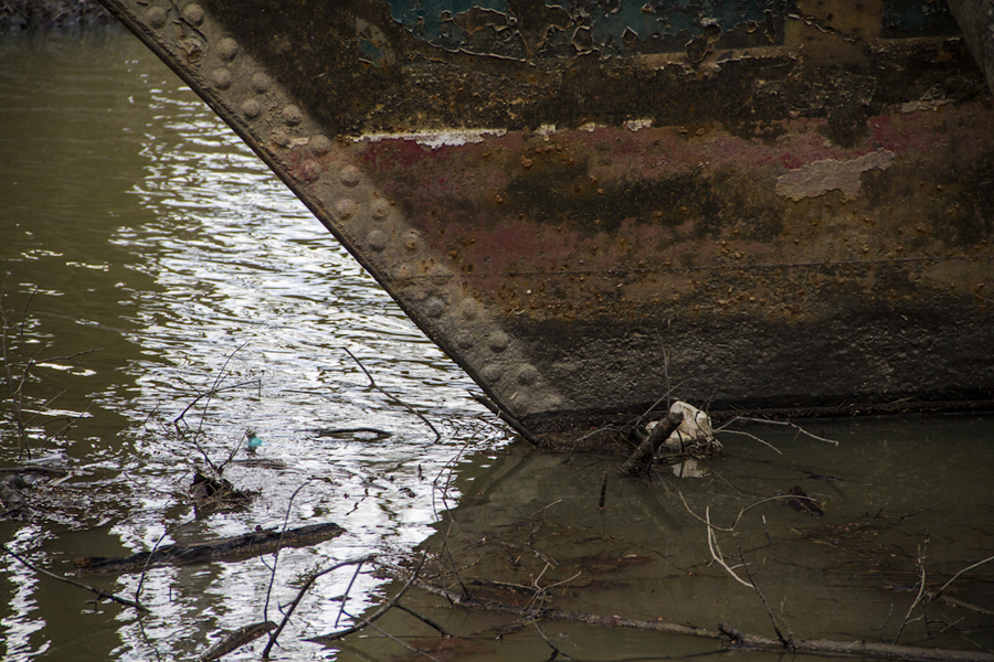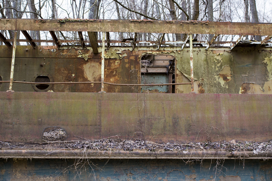Shes been slowly rusting away in a small creek just a stones throw from cincinnati.