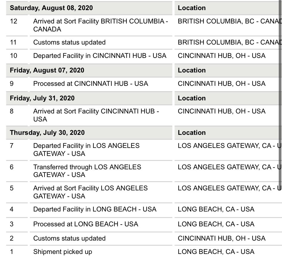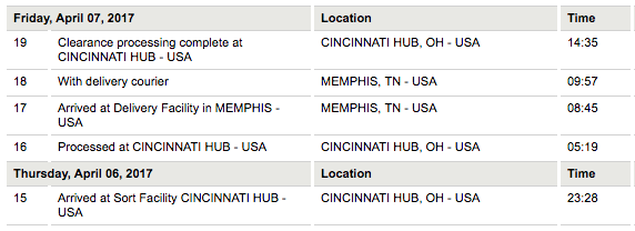 A state of the art facility that connects customer shipments to more than 220 countries and te. 12 shipment on hold cincinnati hub oh usa 0451 1 piece friday february 21 2020 location time piece 11 customs status updated cincinnati hub oh usa 0308 10 processed for clearance at cincinnati hub usa cincinnati hub oh usa 0142 1 piece 9 clearance event cincinnati hub oh usa 0142. Wednesday january 10 2018 location time pieces 8 customs status updated cincinnati hub oh usa 236 am 7 clearance event cincinnati hub oh usa 1250 am 1 pieces 6 processed for clearance at cincinnati hub usa cincinnati hub oh usa 1250 am 1 pieces tuesday january 09 2018 location time pieces 5 customs status updated cincinnati hub oh usa 346 pm 4. 8 processed at cincinnati hub usa cincinnati hub oh usa 0445 1 piece jd014600003544192200 7 arrived at sort facility cincinnati hub usa cincinnati hub oh usa 0133 1 piece jd014600003544192200 tuesday december 13 2016 location time piece 6 customs status updated cincinnati hub oh usa 1227.