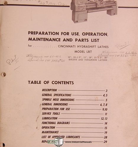 Cincinnati Hydrashift Lathe Manual