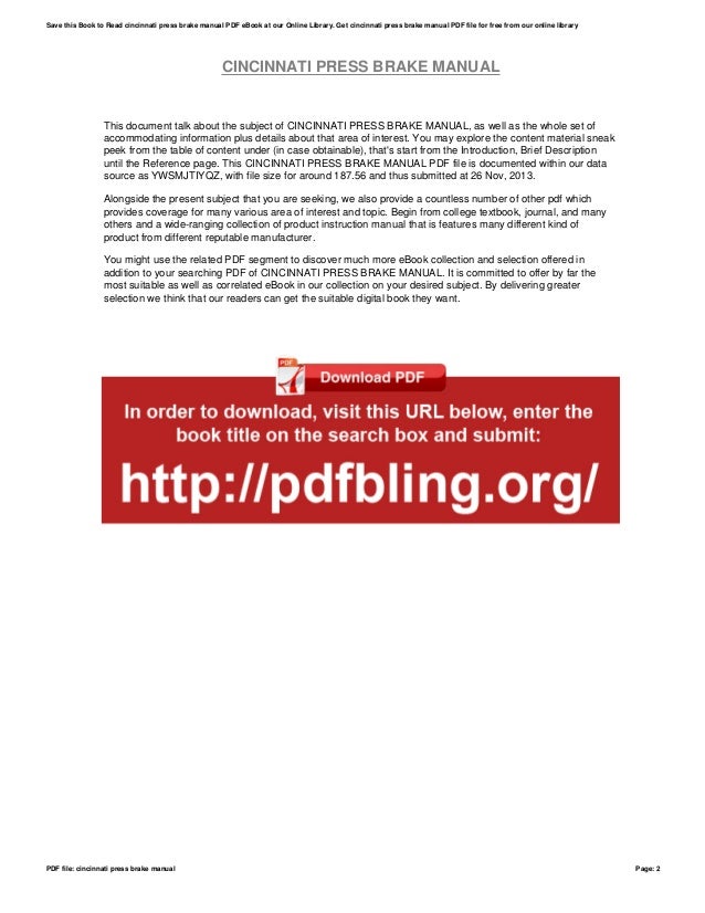 It makes the readers have good and much knowledge. Em 519 n 08 19 proform 400 2000 hydraulic press brakeosmm to download files add to cart check out you will receive an email with the download link. Reading cincinnati press brake manual 135 pdf pdf online free can be disappeared the readers stress with the daily routine. Contents 2 safety 2 bending on a ci press brake 8 press brake bending capacity 9 mild steel air bend.