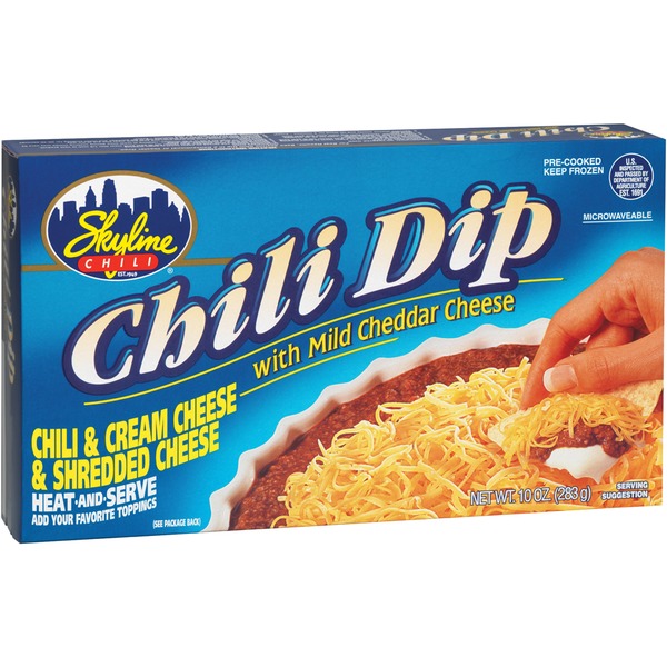 Serve our famous skyline chili dip at your next get together and we guarantee no one will go home hungry. In a large baking dish spread cream cheese in an even layer. 105 oz can of skyline chili 8 oz cream cheese room temperature 6 8 oz shredded cheddar cheese fine shredded optional. Preheat oven to 375 d.