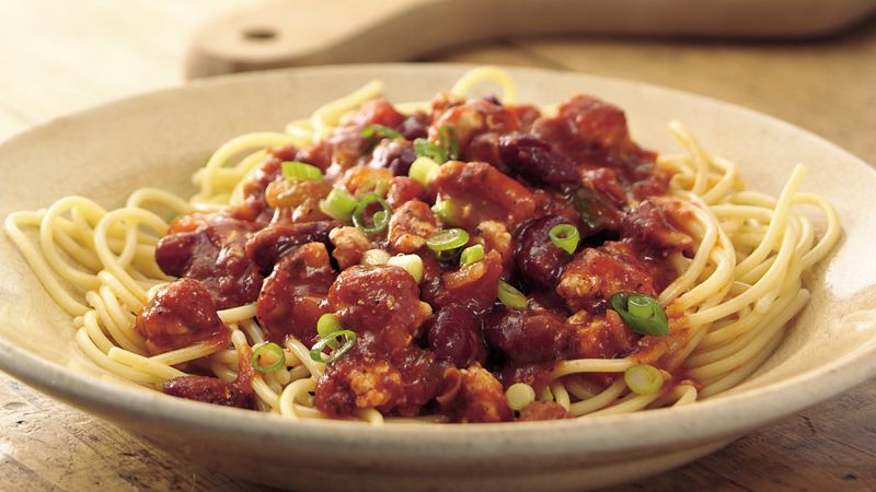 Add the worcestershire chile powder cocoa powder paprika oregano allspice cinnamon garlic jalapenos onions and cloves. Add the beef and brown well. 12 pound spaghetti 2 tablespoons olive oil 1 onion diced 4 cloves garlic minced 1 pound ground beef or 1 can beef chili with beans 2 large tomatoes seeds removed and diced or 1 can diced tomatoes 4 ounces tomato paste salt and freshly ground black pepper 2 tablespoons chili powder 1 tablespoon. Ingredients 1 pounds bucatini or spaghetti 2 tablespoons extra virgin olive oil evoo 2 3 slices smoky bacon finely chopped 1 pounds ground sirloin 1 onion finely chopped 4 5 large cloves garlic finely chopped salt and pepper 3 jalapeno chili peppers seeded and finely chopped 2 tablespoons.