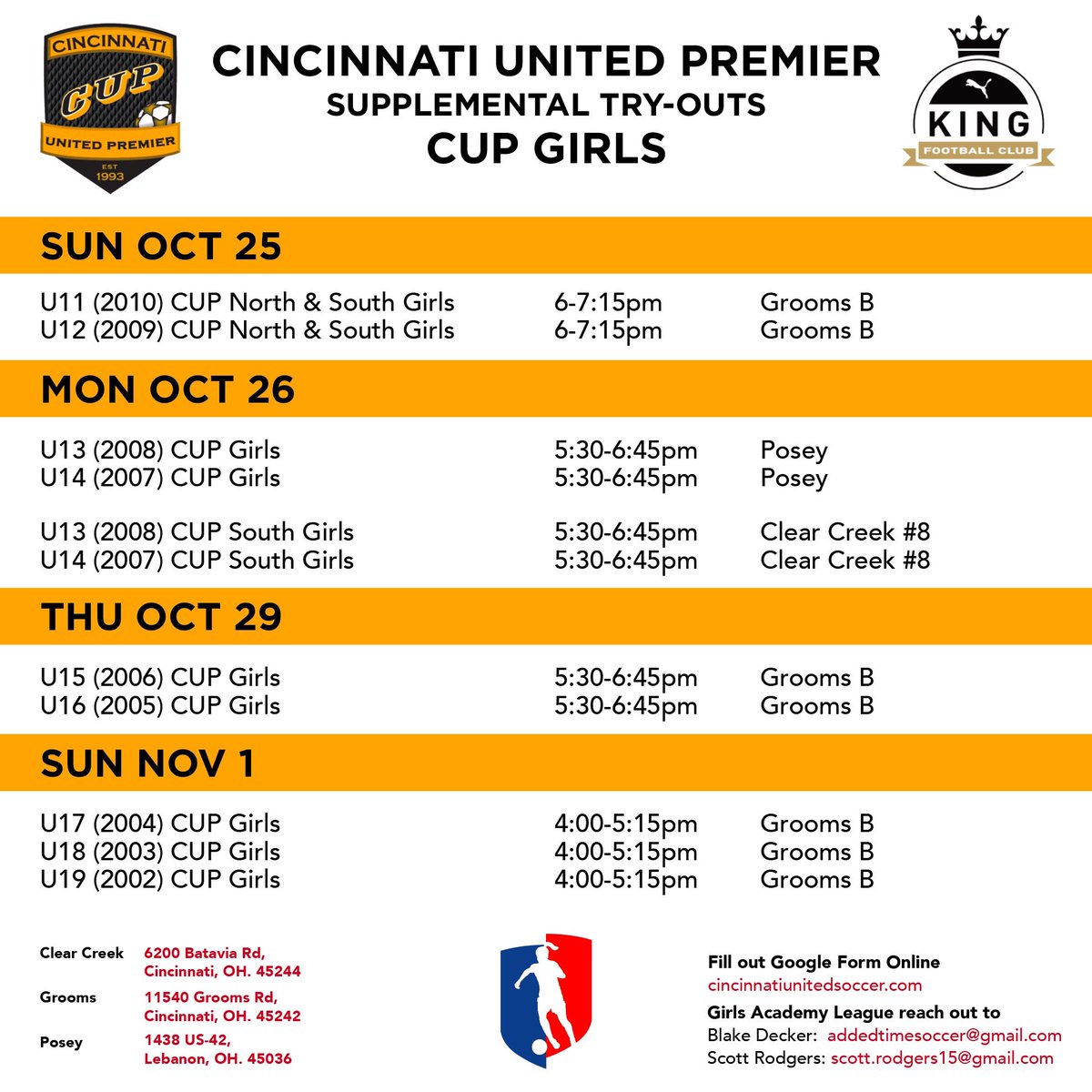 Cincinnati united premier soccer club. Offers premier competitive recreational outreach and academy programs. Club social media policy download. Boys u 12 club map. Tony awor assistant coach reece hands assistant coach adrian parrish assistant coach.