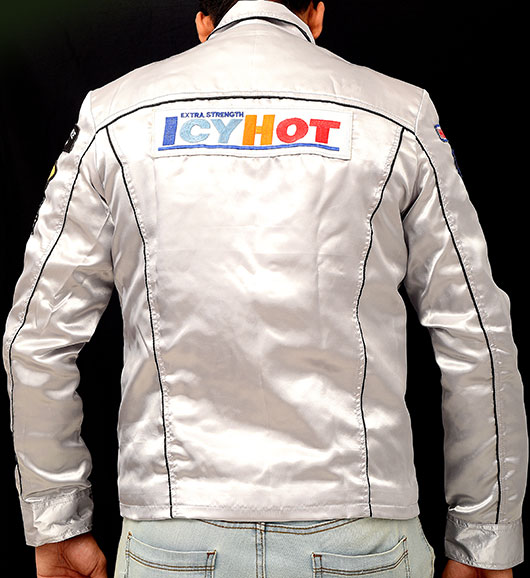 Death proof kurt russell icy hot silver satin jacket death proof kurt russell icy hot jacket is a remarkably significant jacket when you look up to the collection of different jackets. That kurt russell costume is really ensemble for your great comfort.
