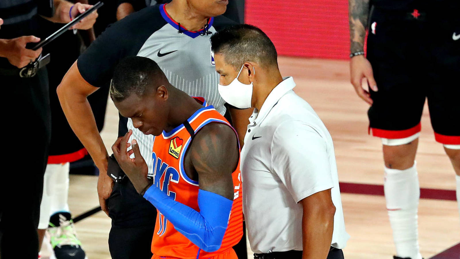 Schroder was one of the virtual fans during the game the fox sports oklahoma broadcast showed. He missed three games leading up to sunday. Schroder left the bubble for the birth of his daughter. Schroder born in braunschweig germany started his career playing for the phantoms braunschweig in 2010.