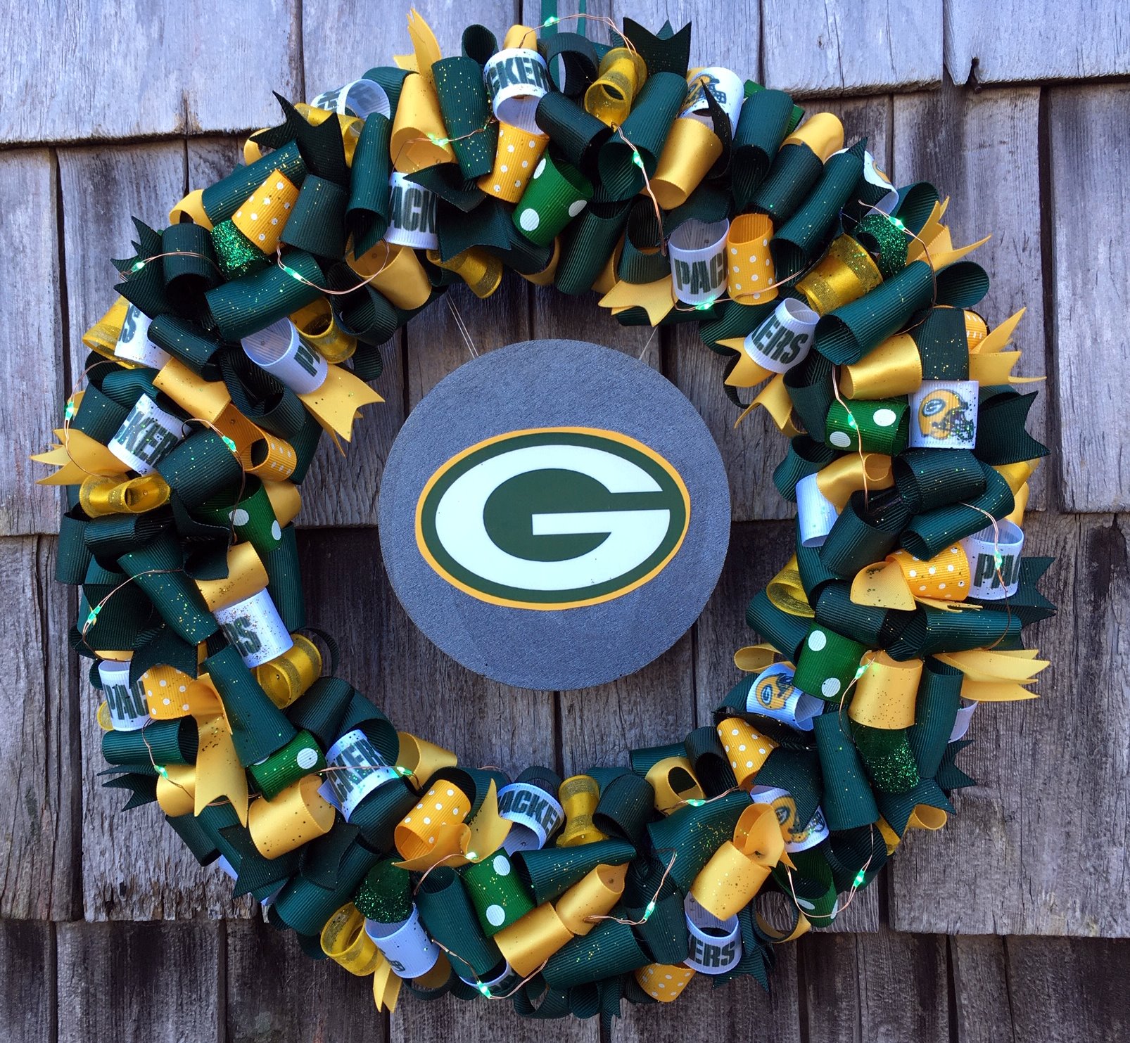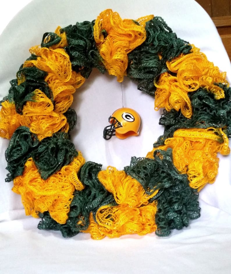 It is made of fabric on a 12 inch wreath ring. Show your packer pride by hanging this up. The wreath measures approximately 26 x 26 x7 and comes ready to hang. There are 163 green bay packers wreath for sale on etsy and they cost 5446 on average.