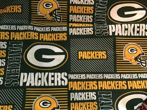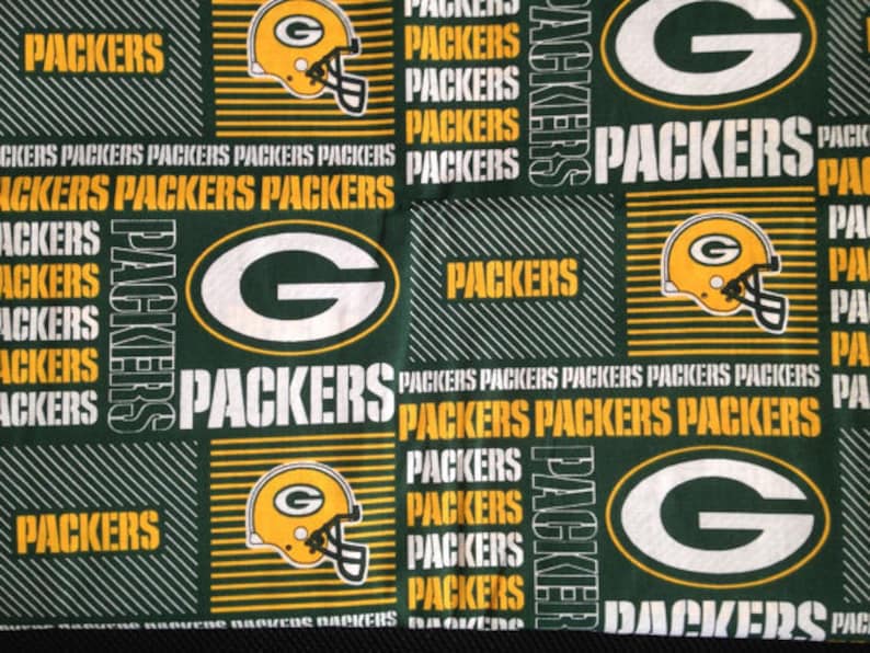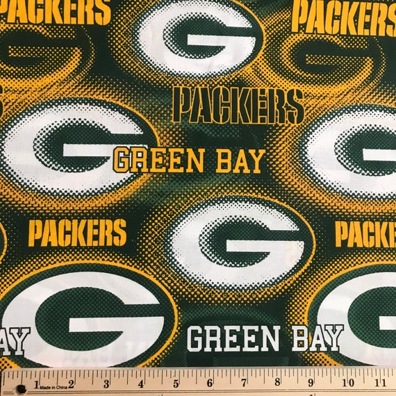 Orders are shipped next business day by usps with tracking included. This 58 inch wide cotton fabric is designed in green with the green bay packers logo the initial g and the word packers in yellow for striking appeal. Only 3 available and its in 6 peoples carts. Nfl green bay packers liquid blue football print fleece fabric by the yard 2299 only 3 left in stock order soon.