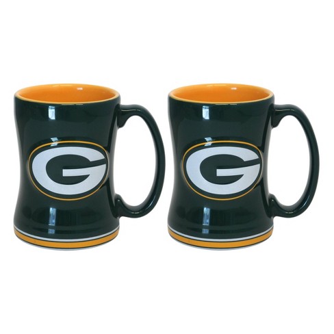 Green bay packers yellow 14oz sculpted relief mug nfl boelter brands. Slim jim on back. Did you scroll all this way to get facts about green bay packers mug. Green bay packers 15oz.