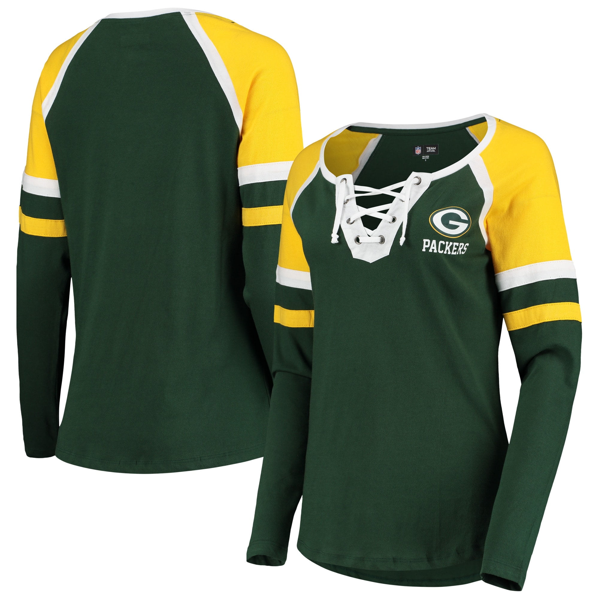 Shop green bay packers womens apparel at the dicks sporting goods nfl fan shop. Womens new era greenwhite green bay packers plus size athletic varsity lace up long sleeve t shirt sale 4799.