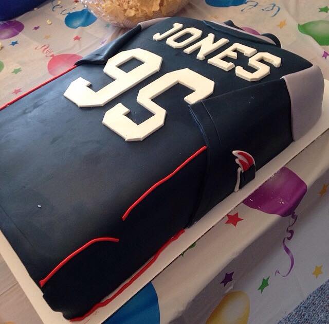 Hes 18 now and this is still his favorite cake. Nfl new england patriots football with tee cake decorating kit. Join the superbowl set and make a touchdown with this new england nfl shaped american football jersey cake. Decorated in the same style as this clients favourite team complete with patriots logo badges and age numbers in a matching style.