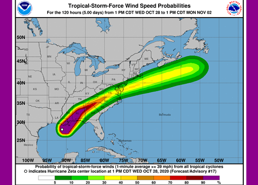 Zeta is a fast moving storm and was tracking east northeast at 53 miles per hour as of 2 pm.