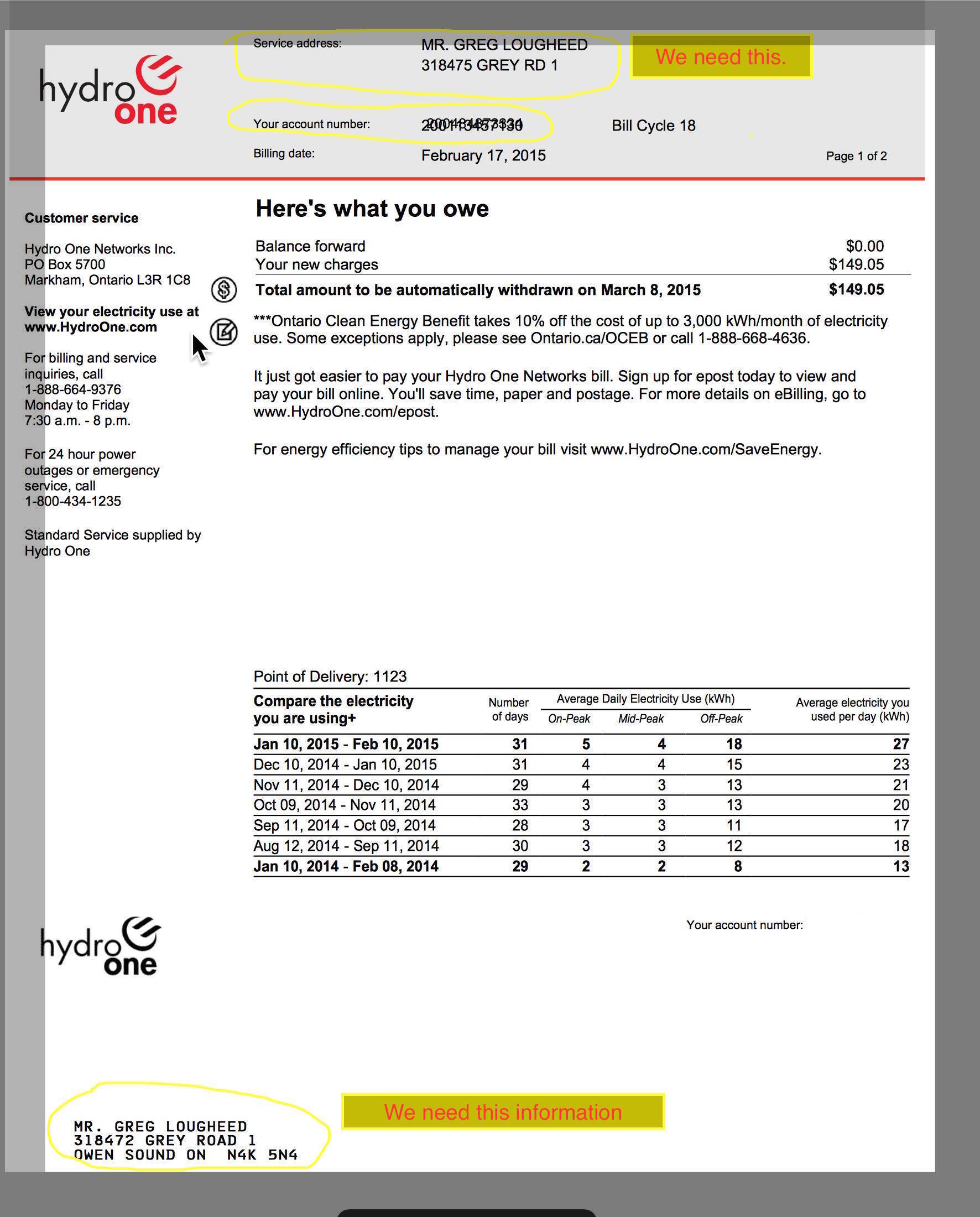 Hydro One Number