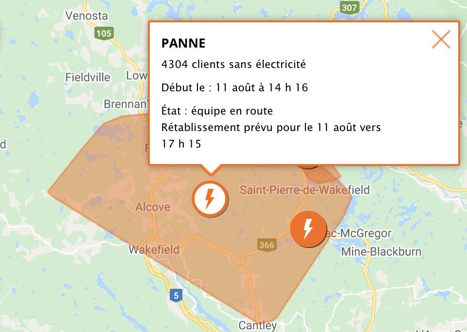 Hydro quebec panne de courant gatineau. Bien quhydro quebec mette a jour linformation sur les pannes et les interruptions planifiees indiquee sur les cartes et dans le bilan par region le plus souvent possible elle ne peut garantir lexactitude et la teneur de cette information y compris les heures de retablissement du service. A 5h30 ce matin 13 200 abonnes dhydro quebec etaient prives de courant. In no case shall hydro quebec be held liable for any use or inability to use the information on the maps or in the service status by region report. Numeros generaux tarif g tarif g avec facturation de moins de 100 000 an.