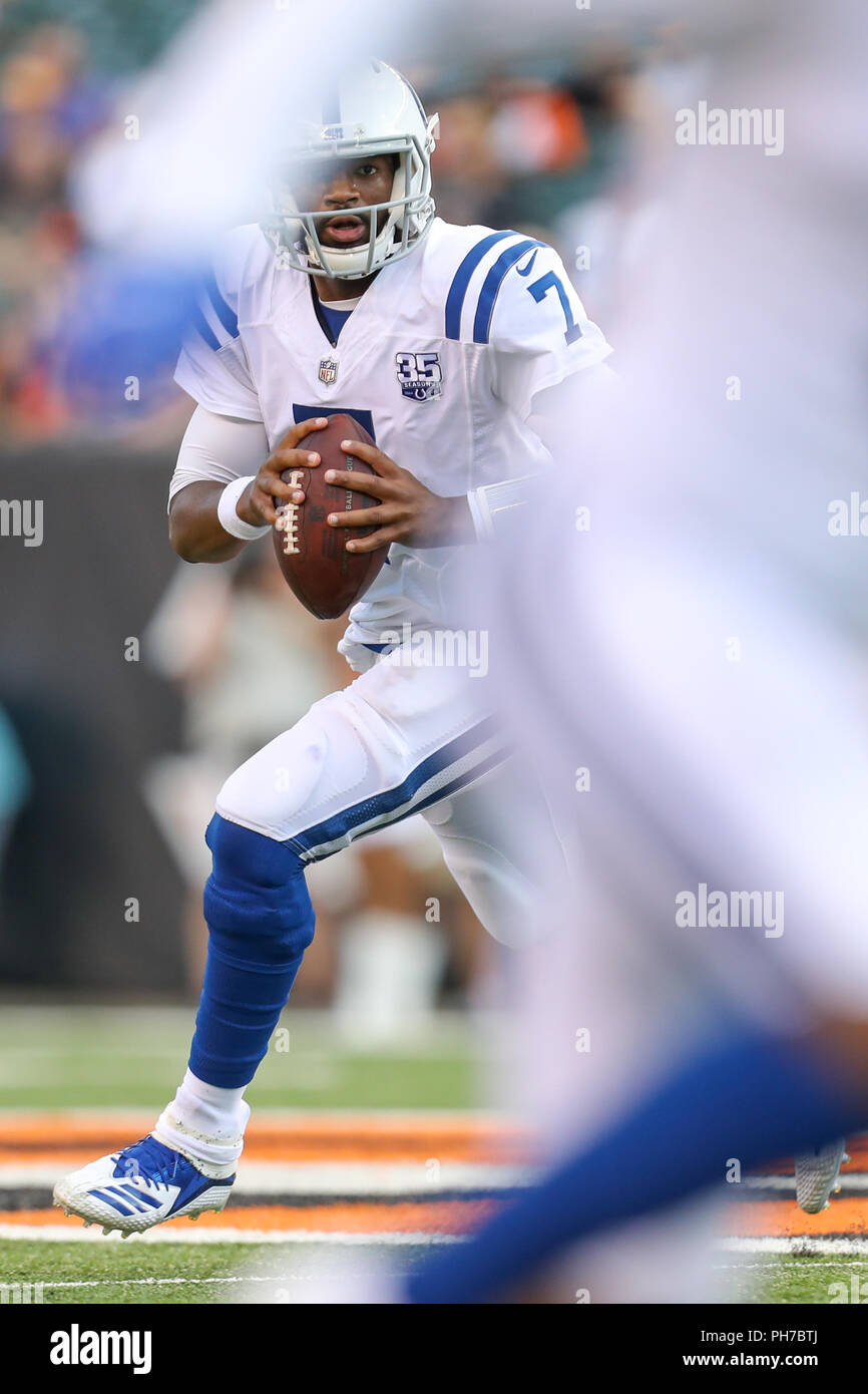Cincinnati Ohio Usa August 30th 2018 Indianapolis Colts Quarterback Jacoby Brissett 7 Scrambles And Looks For An Open Receiver In A Game Between The Indianapolis Colts And The Cincinnati Bengals At Paul