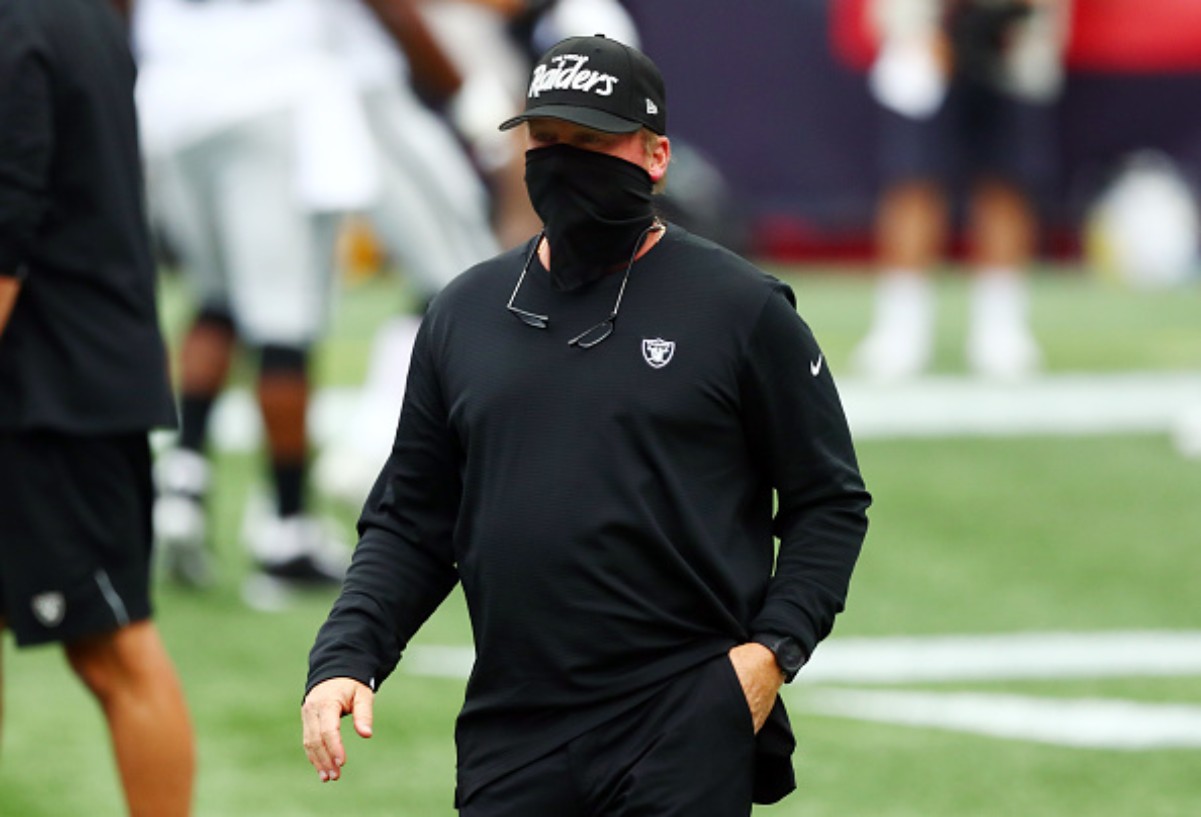 Jon gruden mask patriots. Even when gruden is wearing his mask 80 of the time you can still see his nostrils peeking out no surprise half the raiders sideline also have their masks down half the time. Gruden wore a mask during the las vegas raiders game against the new england. He was called out by the nfl after the first. After the first two weeks of the nfl season las vegas raiders head coach jon gruden has had some major mask issues.