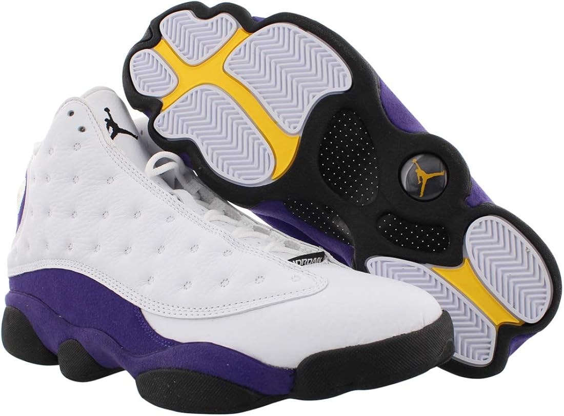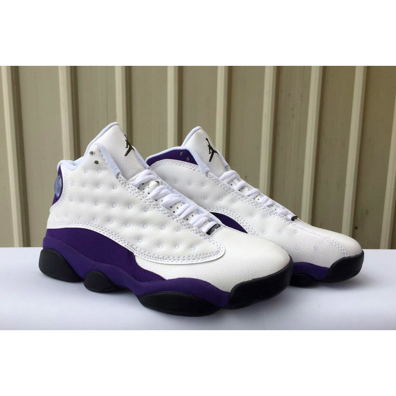 Jordan 13 lakers shoes. The dotted white leather upper is contrasted by a smooth white leather toe. Air jordan 13 retro lakers whiteblack court purple university gold has dual nike zoom units that offer lightweight cushioning with a phylon midsole to maximize comfort. Black midsole pods finish off the look. Air jordan 13 sku.