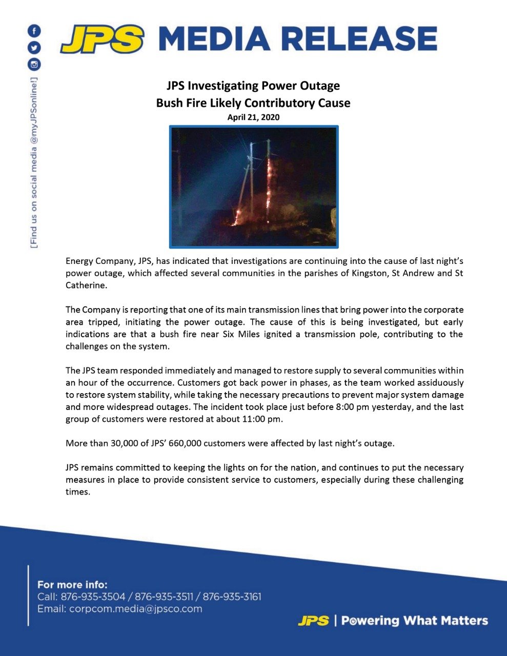 Get the latest news by email the planned outage will also affect neighbouring clarendon communities with the jamaica public service jps advising that it must undertake urgent and critical repairs at its rhodens pen. For customer service information. Check current status and outage map. The power outages are due primarily to trees coming down on lines and downed poles caused by saturated soil soil erosion and landslides from days of persistent rains and heavy winds.