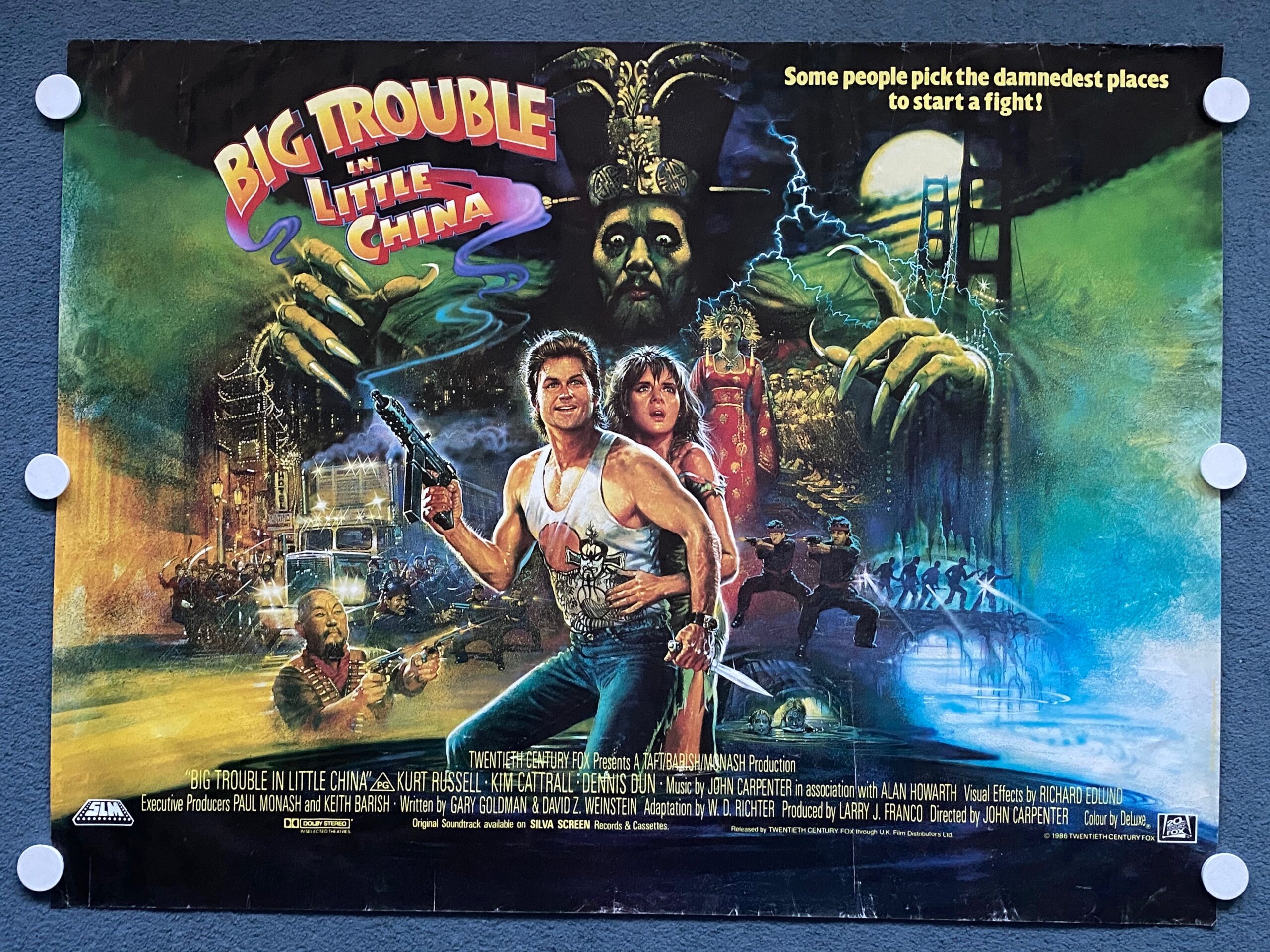 Big trouble in little china 1986 kurt russell. Big trouble in little china also known as john carpenters big trouble in little china is a 1986 american fantasy martial arts comedy film directed by john carpenter and starring kurt russell kim cattrall dennis dun and james hongthe film tells the story of jack burton who helps his friend wang chi rescue wangs green eyed fiancee from bandits in san franciscos chinatown. Sold request a custom product. Httpjmp1egc68y buy the movie.