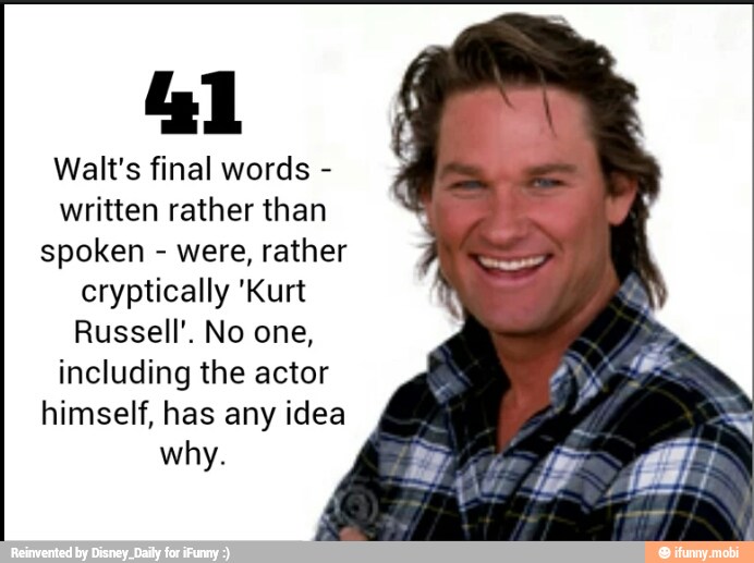The Last Words Written By Walt Disney Was Kurt Russell However Nobody Not Even Kurt Russell Can Tell Why Facte Cards Cool Fun Weird Facts On E Cards