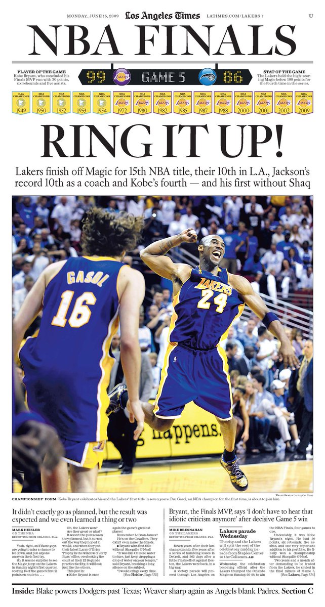 La Times Lakers Championship Newspaper