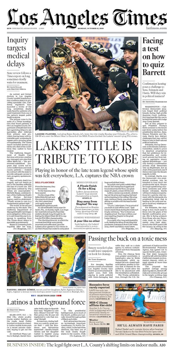 Details about 2020 la times newspaper los angeles lakers nba championship finals lebron.
