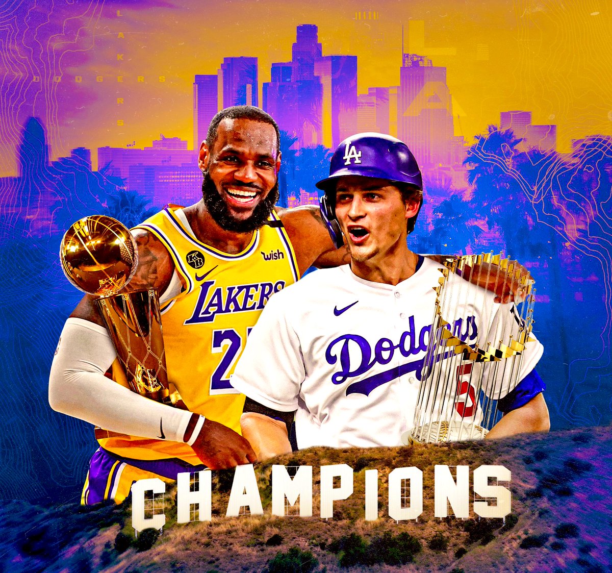 Lakers and dodgers championship art. Even the legends of lakers past showed their support for the dodgers. Both the lakers and the dodgers played through an uncertain time pulling through with championship titles. Magic johnson james worthy and kareem abdul jabbar all of whom were part of the 1988 championship team sent congratulatory. Los angeles lakers championship 2020 1199.