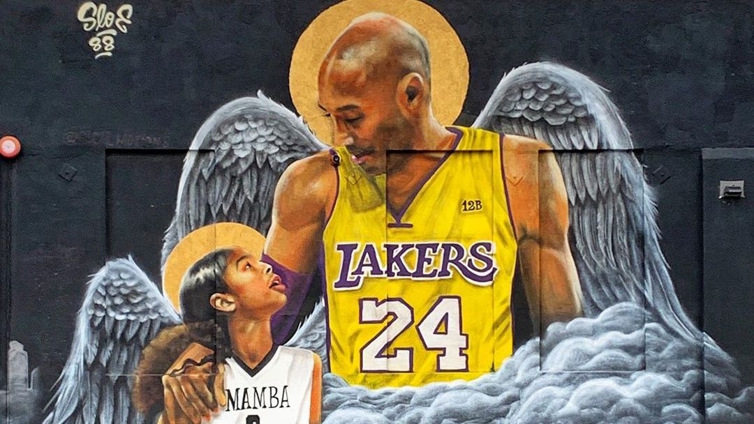 Street artists gustavo zermeno jr and flaxworx added the great kobe bryant and the 17th trophy to the said la mural after the team won the 2020 nba title.