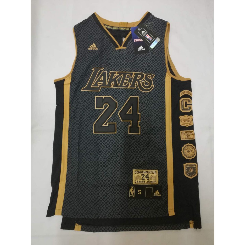 The lakers wore their black mamba jerseys in honor of kobe bryant as the uniforms also sported a special patch bearing the number 2 inside a heart to honor gianna bryant. Now you can pay tribute to your all time favorite los angeles lakers star with this 2003 04 hardwood classics authentic jersey from mitchell ness. This instant classic features a snakeskin print on the exterior contrasted by its black interior 16 stars on the side panels iconic 3 d style lettering with a drop shadow and the scoop. It was the uniform that kobe bryant wore the very first time he suited up for the lakers back on nov.