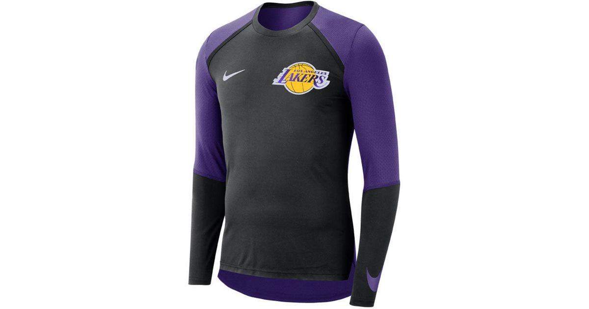 Los angeles lakers fanatics branded heritage long sleeve raglan t shirt heathered gray reduced. Youll feel prepared to take every jump shot with confidence just like the los angeles lakers. Mens nike nba t shirt. The nike tee long sleeve athletic lakers shirt yellow purple drifit mens sz xlt.
