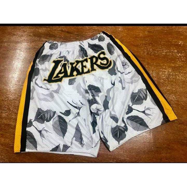 We have the best selection of los angeles lakers jersey t shirts hats and gifts for men women and kids. Nike los angeles lakers nba boys youth 8 20 association edition white swingman shorts. Nwt mens kobe bryant lakers 24 yellow jerseyshorts sizexl. Mens and womens basketball shorts suitable for the lakers and bulls game shorts breathable loose fabric quick drying lakers m.