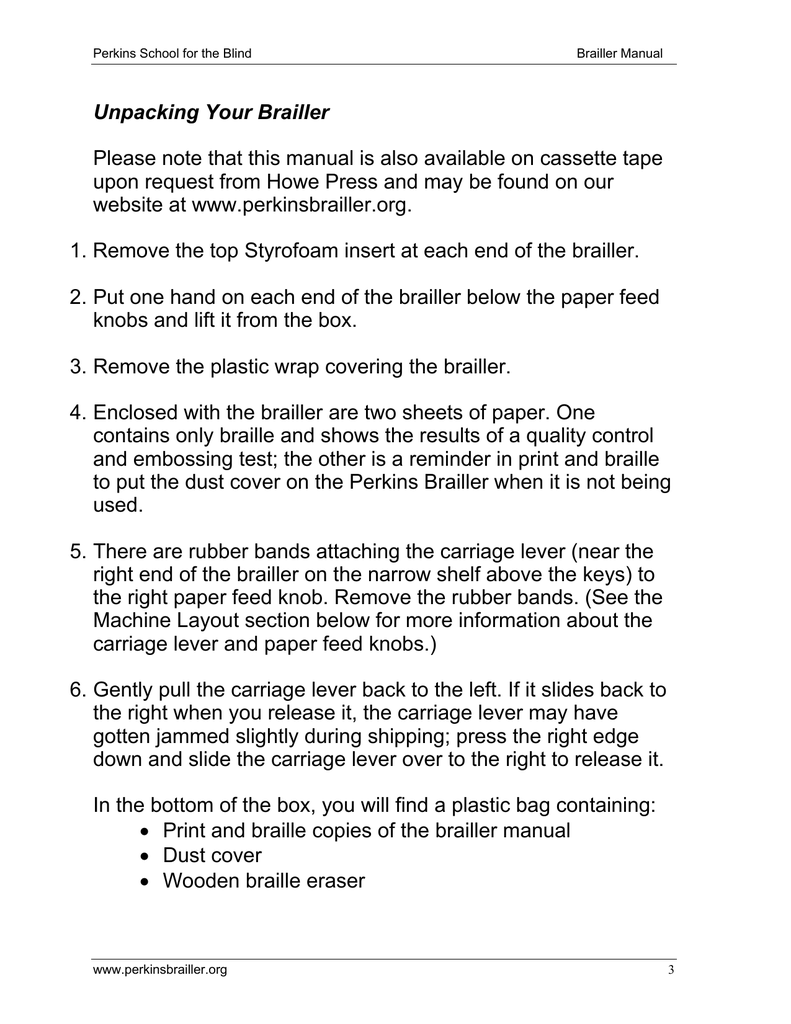 Unpacking the mountbatten the mountbatten is shipped with an insert to stop the braille head from moving.