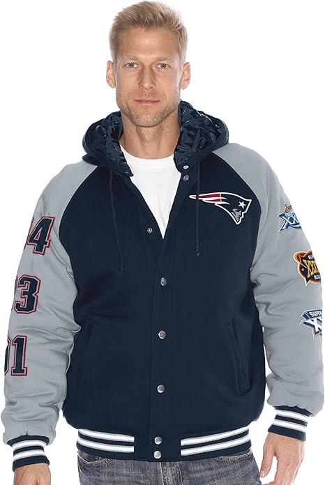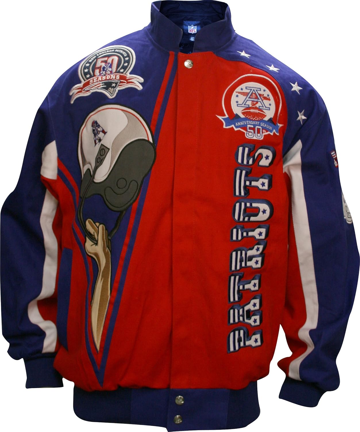 50 out of 5 stars 1. Most popular in jackets. Mens starter whitenavy new england patriots historic logo renegade satin varsity full snap jacket. Ultra game nfl new england patriots mens active basic jogger fleece pants team color stripe large.