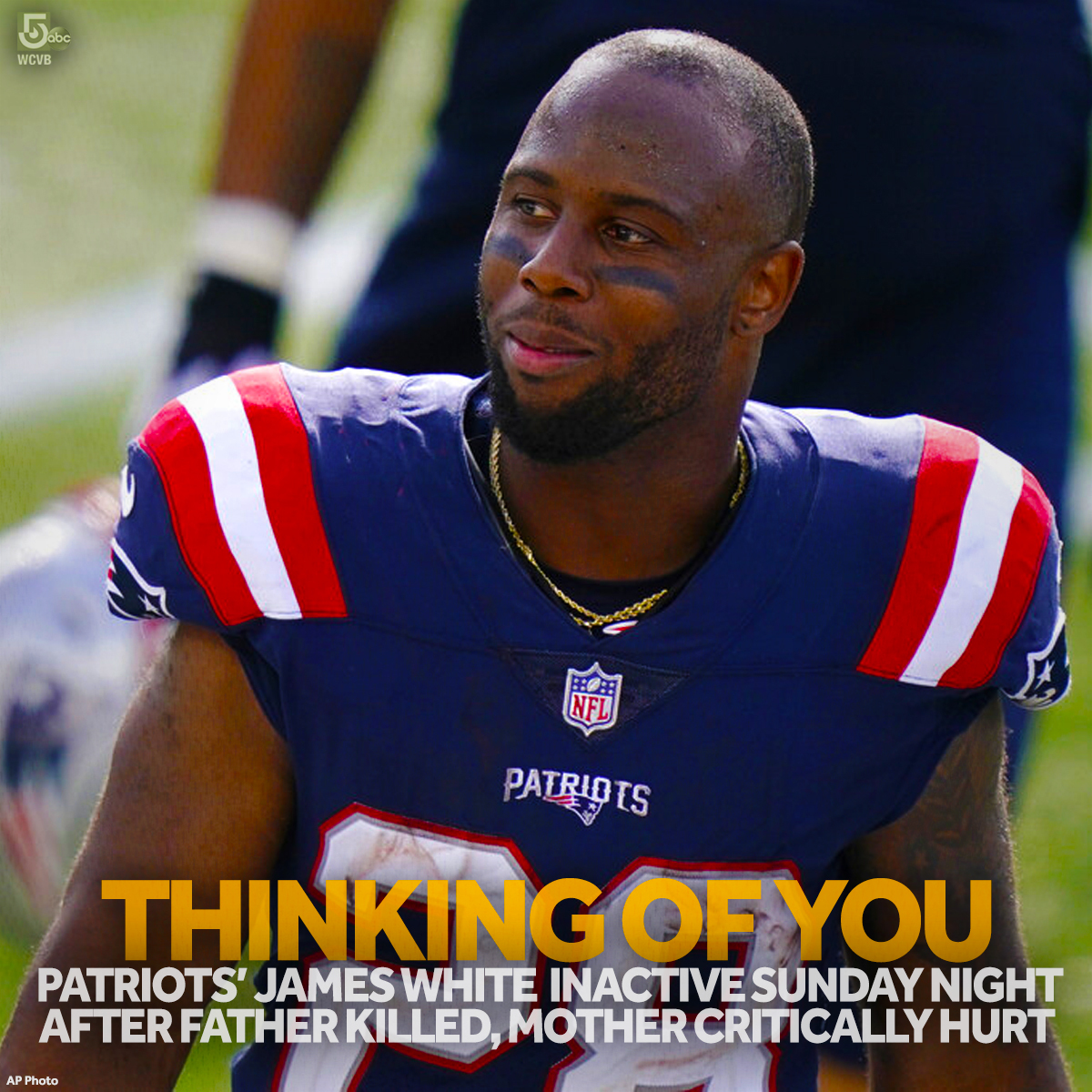 Boston cbs patriots running back james white did not suit up to play on sunday night in seattle after learning that his father died in an automobile accident. Tom brady has taken to twitter to react to the heartbreaking family news for new england patriots running back james white. White is not playing in this evenings patriots seahawks game. Tyrone white who was a captain with the.