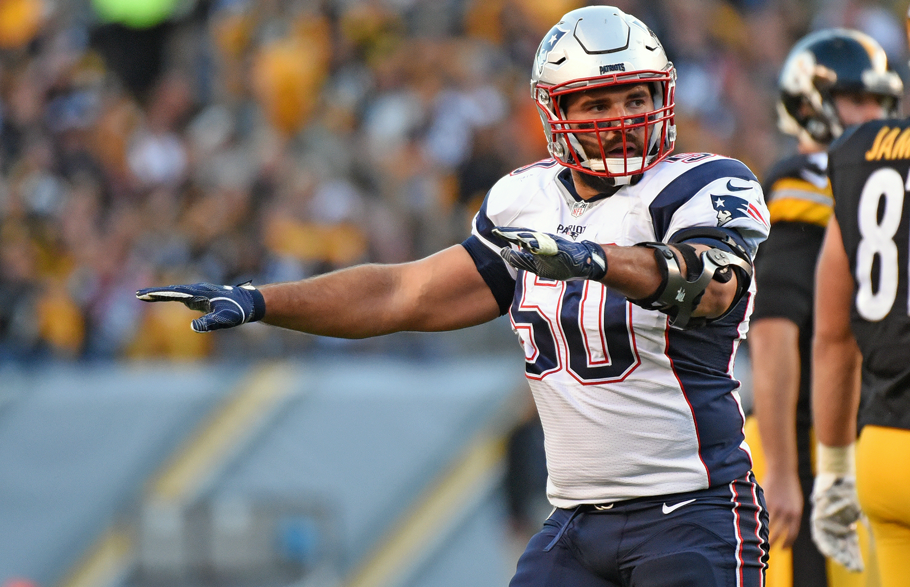 New england patriots number 50. February 1 1984 age 36 blue island illinois. Ravens will be patriots toughest test yet food4vets program to provide meals to veterans in new hampshire on friday nov. 6 3 250 lbs. Players who have worn number 50 for the bostonnew england patriots include offensive lineman bob yates 1961 65 linebacker jim cheyunski 1968 72 linebacker sam hunt 1974 79 linebacker.