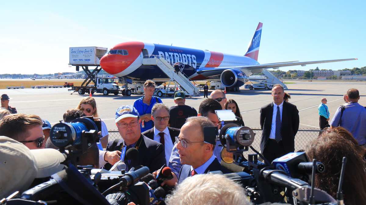 Tom bradys number 12 and matthew slaters number 18 are on two of the seats. Green airport in rhode island on wednesday before taking their customized aircraft to florida where they play the. In truth one plane will be the teams primary aircraft with the other serving as a backup. Arriving for their monday night football match against the miami dolphins the new england patriots team place made a smokey and dramatic landing.