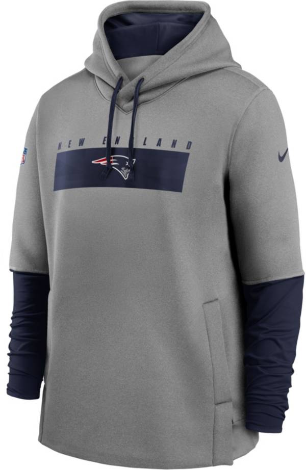 Mens new england patriots nike graynavy sideline impact lockup performance pullover hoodie. With bold graphics and nike fabric technology youll always be comfortable the next time youre watching the new england patriots win. Most popular in sweatshirts fleece. You love to cheer for the new england patriots and wont let the elements stand in your way.